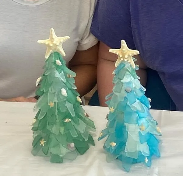 Choose from a wide variety of colors, shapes, and sizes of beach glass to design a truly unique piece of art. Whether you’re making a classic tree or one of the many other options, you’re sure to have a blast! Perfect to help get you in the festive spirit, surrounded by other hard working elves!